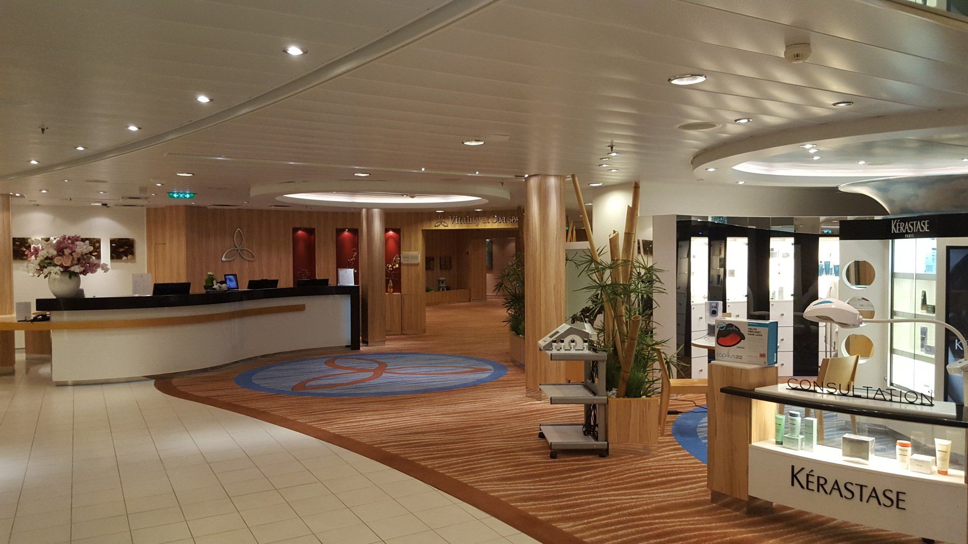 Workout space – was large with a variety of cardio equipment looking out to sea and many different weight machines and free weights to stay in shape. Several classes are available from yoga to stretch and core to aerobics. Whatever floats your boat.