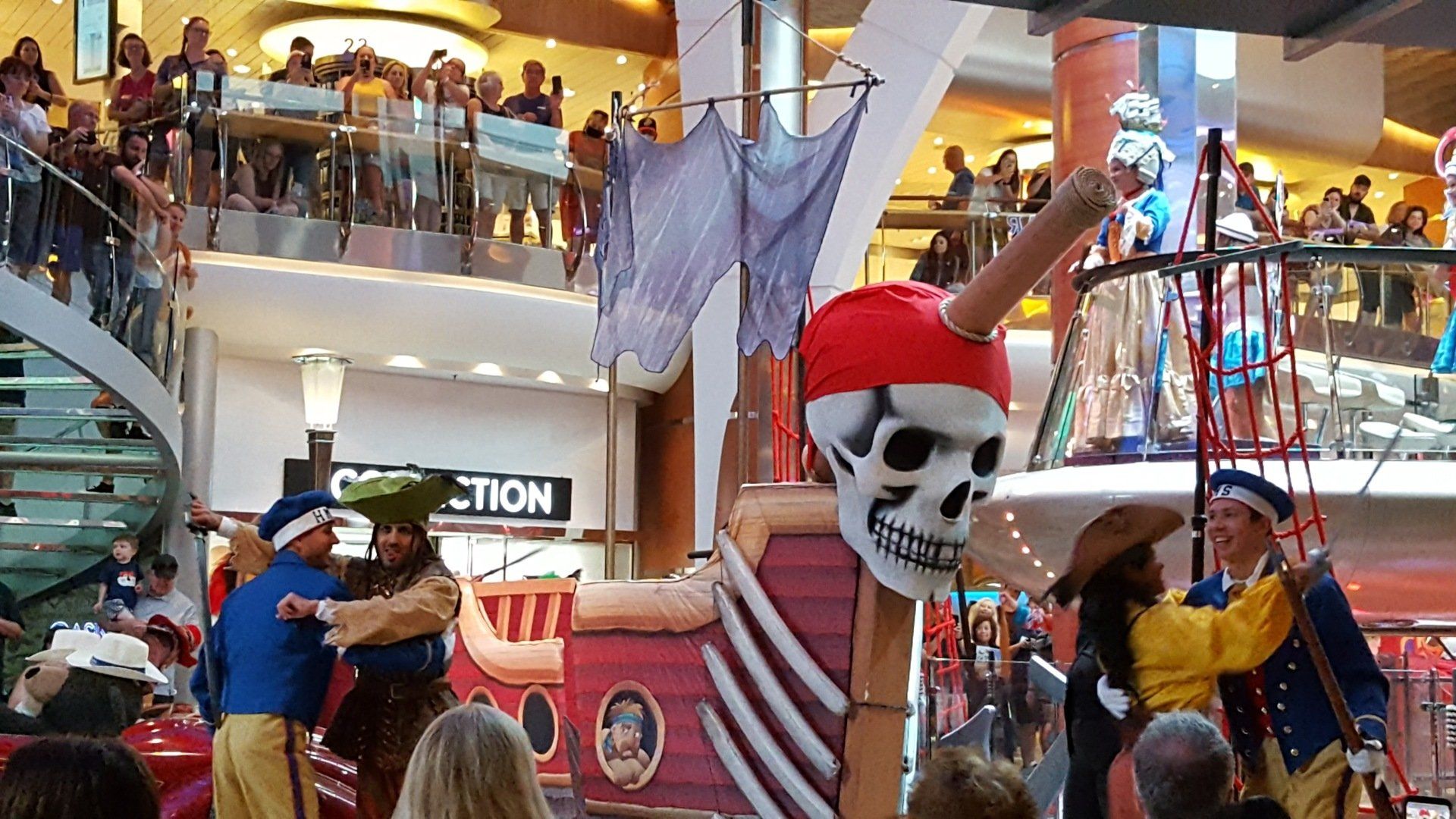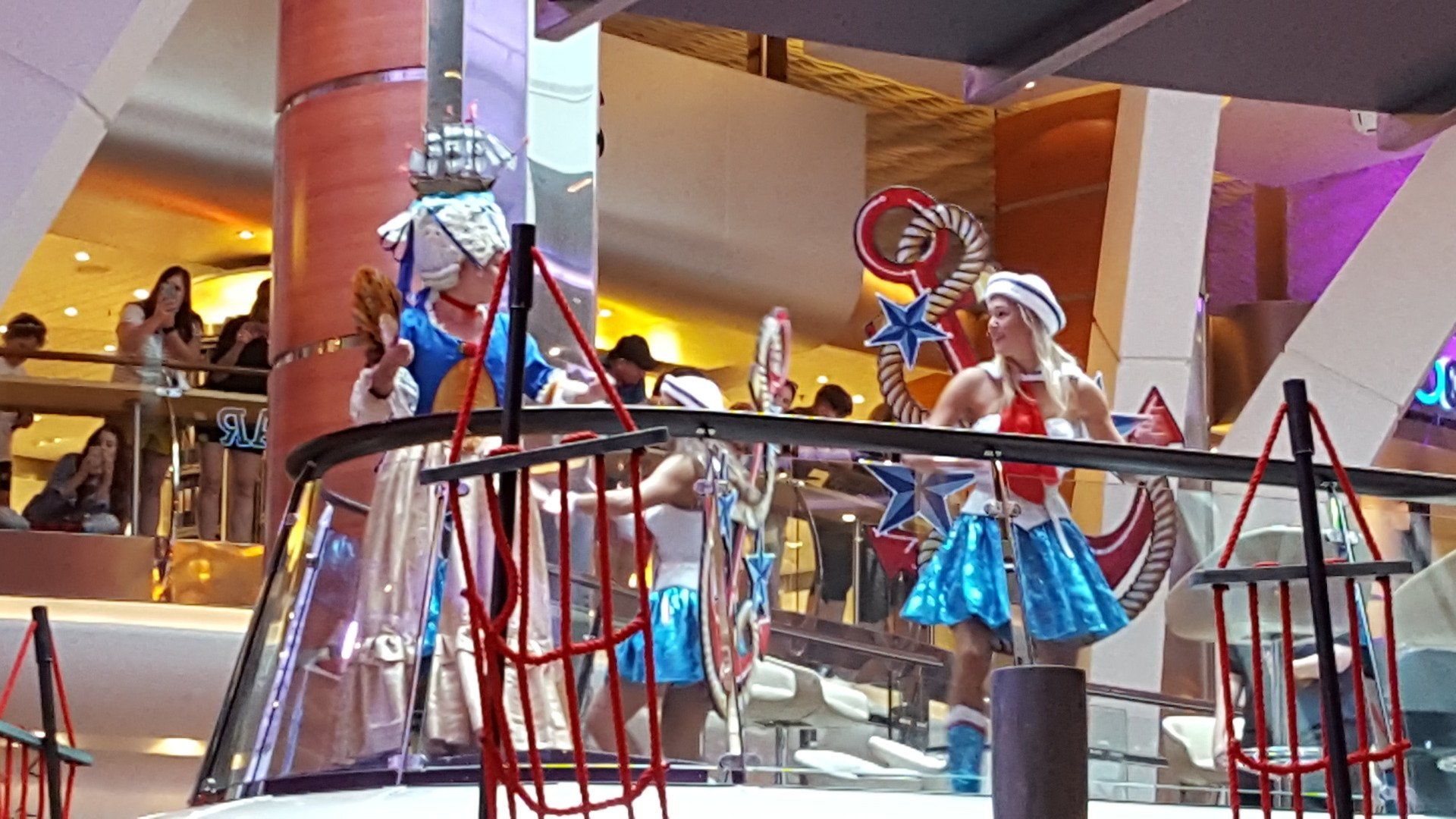 In the early afternoon, the crew put on the show, Ship Ahoy Parade, on the Grand Promenade – with representations of navies from various regions throughout time.