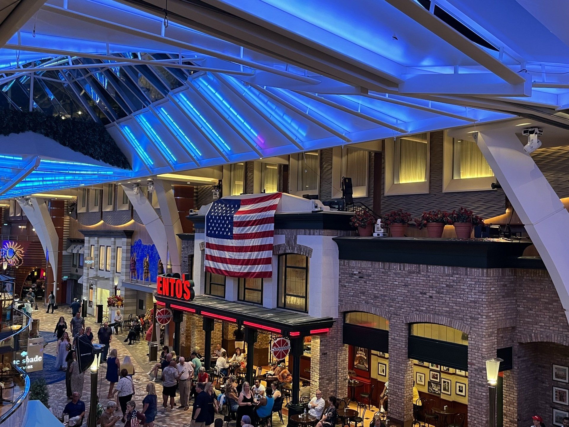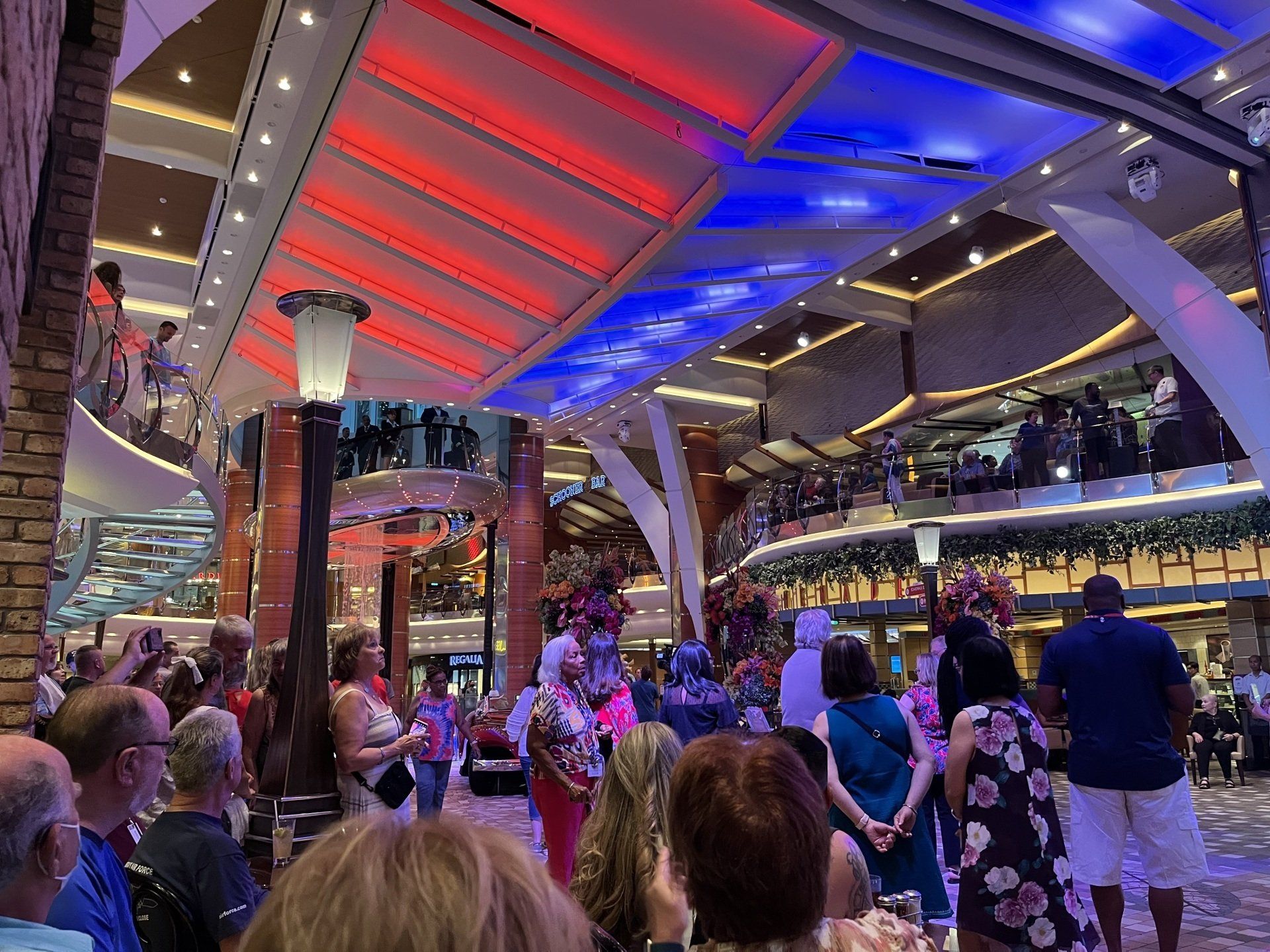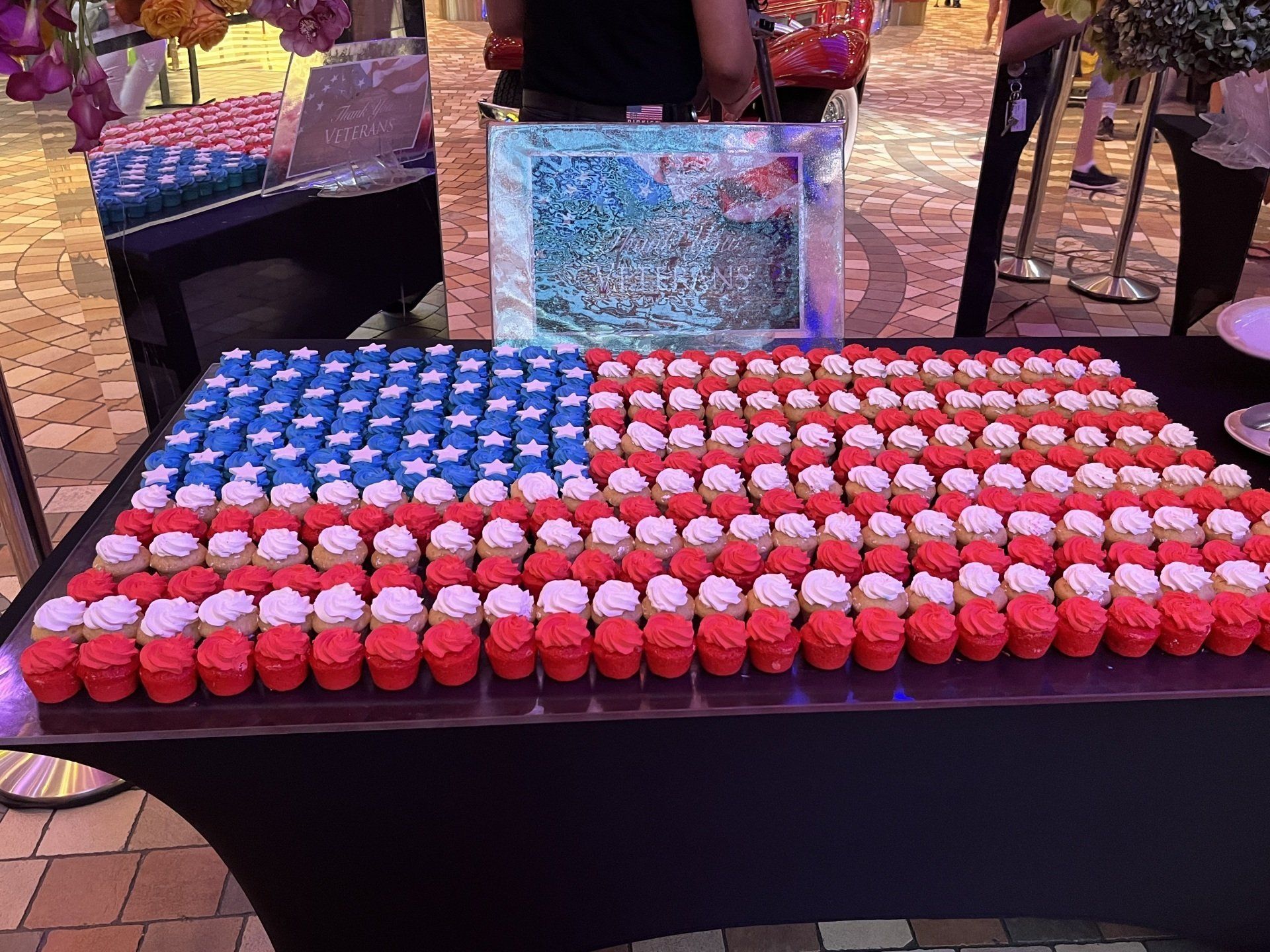 This is a regular celebration on the Allure of the Seas, though in this case, it actually was Veterans Day in the US with a ceremony, that included a brief reading, then a Taps Trumpet solo as all were silent to show appreciation for those who served and paid the ultimate price to protect our country. This ceremony ended with a rousing singing of the first verse of the National Anthem performed by a few cast member from Mama Mia, with all of the Veterans, families, and other participants singing out, it was actually very good.