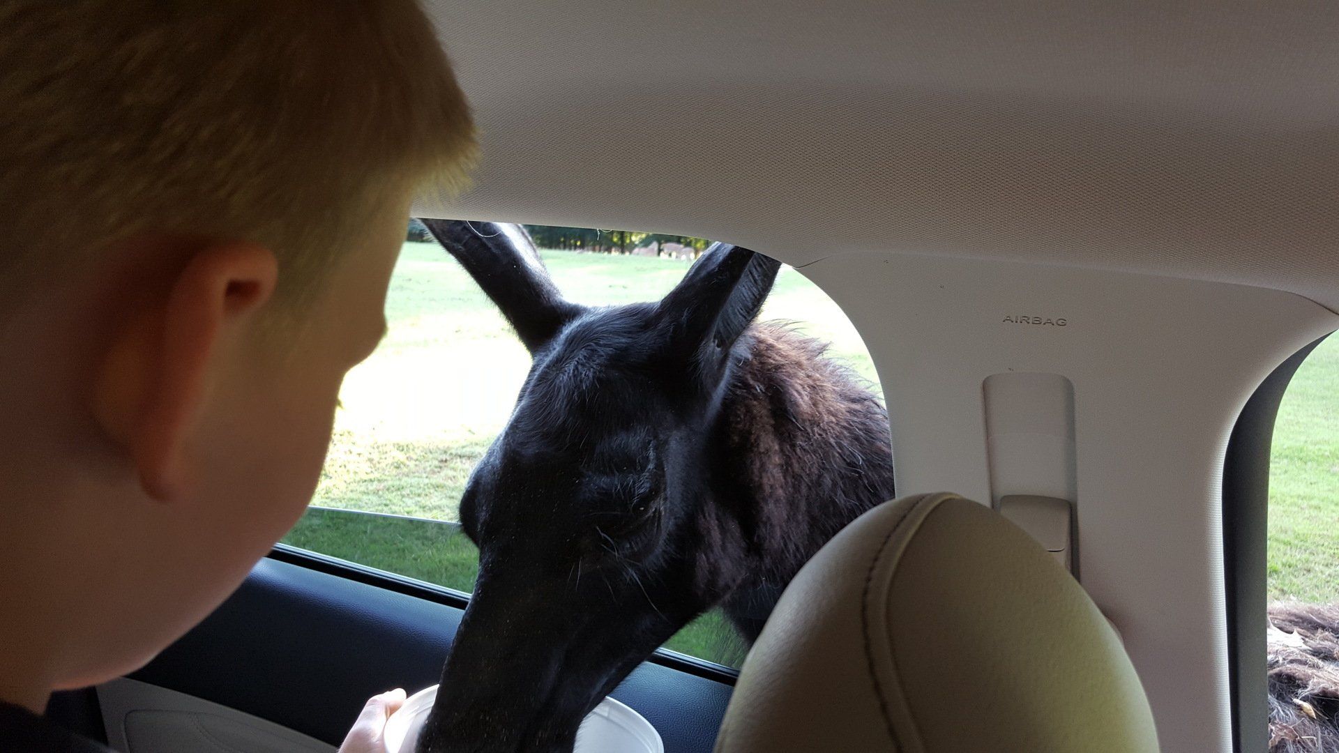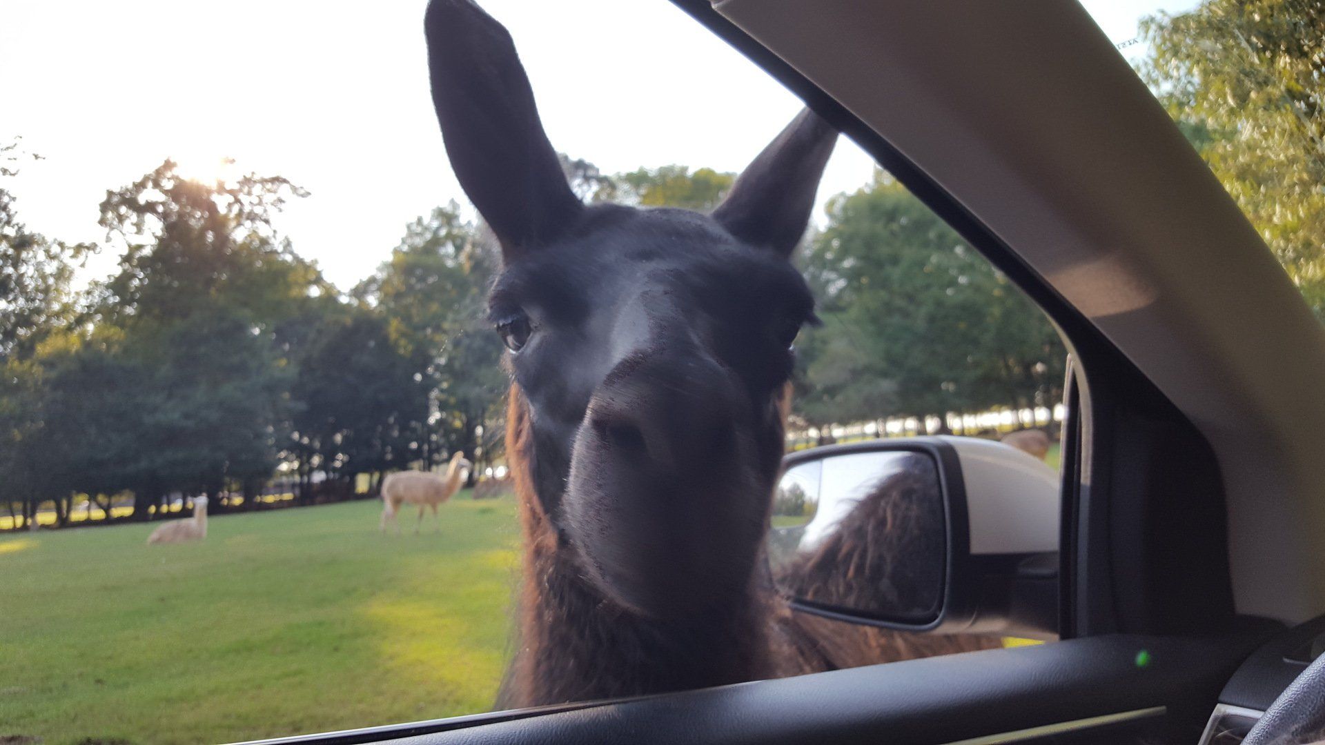 As we drove into the park, we were greeted with large Ostriches’ and our grandson was able to feed them. Along came the zebras and the cute pot belly pigs strolling by. One sign that stood out was “Do Not Feed the Zebras”! As we went along, we saw water buffaloes walking along side of our car and different type of cows that we could feed. Did not want to feed the water buffalos or Texas Long horn Cattle for sure but we liked feeding the llamas and alpacas.