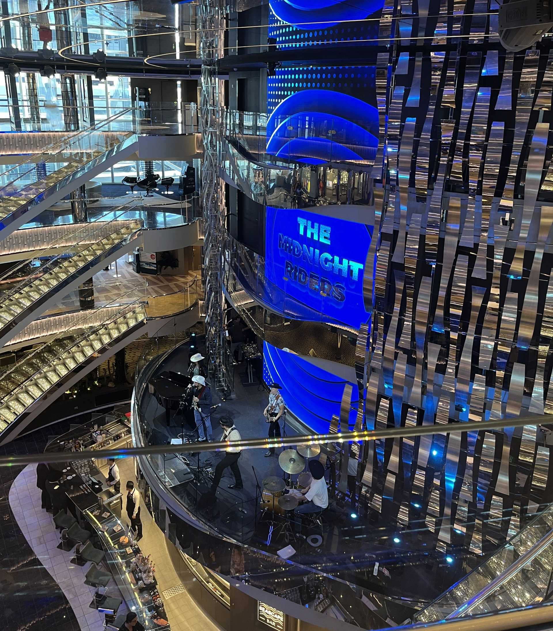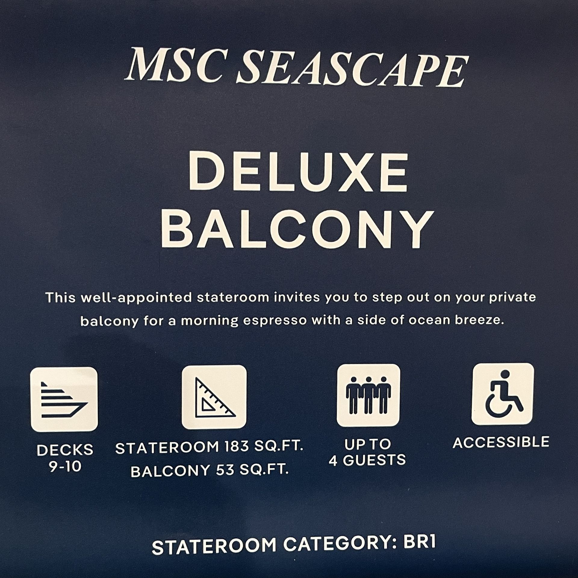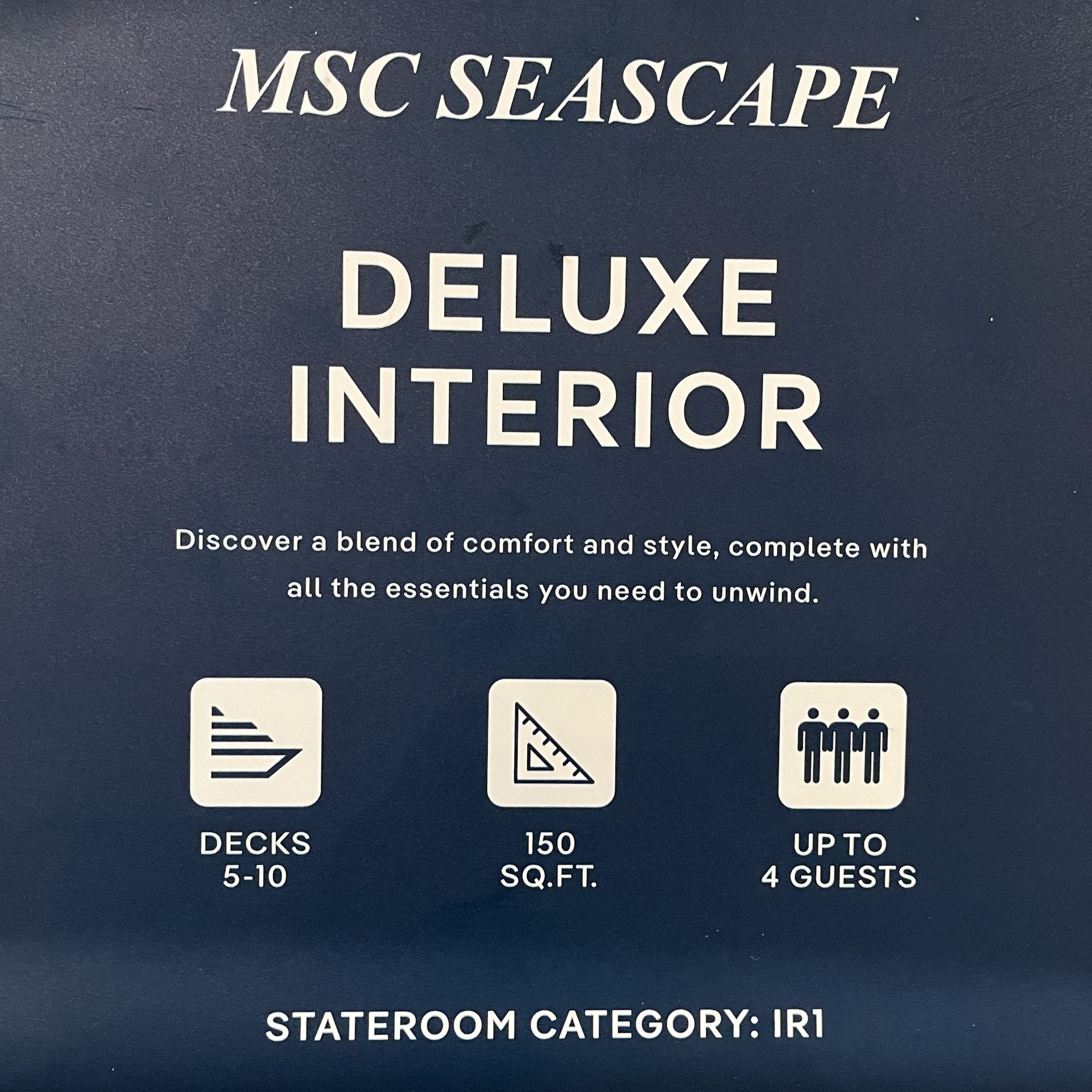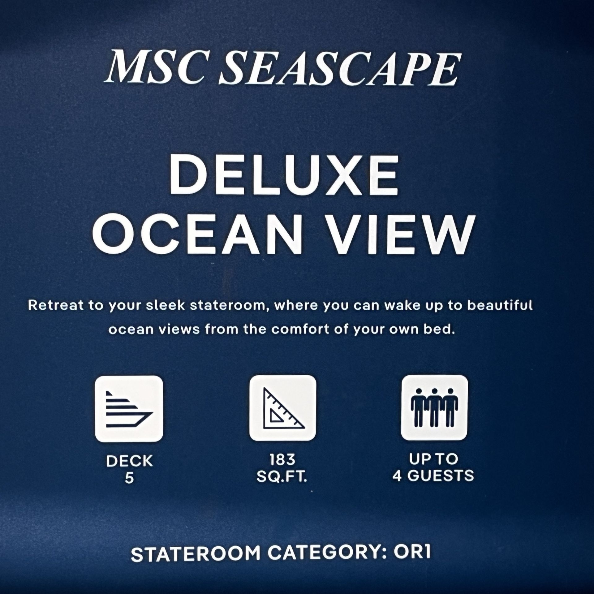 The MSC Seascape marks MSC’s arrival at the Port of Galveston, sailing from the newly developed Pier 14, complete with a new parking deck. This very large ship accommodates up to 5,877 guests in 2,270 cabins, including a variety of floorplans and connecting cabins for larger family voyages. The ship features extensive sitting and dining areas, reminiscent of a city’s theatre and dining district, providing more space and options than typical cruise ships. Guests begin boarding near the multi-story Atrium, a soaring central space anchored by Seascape Reception, Guest Services, and a very large bar, with a stage above the bar on the next level, setting the tone for a grand embarkation experience.