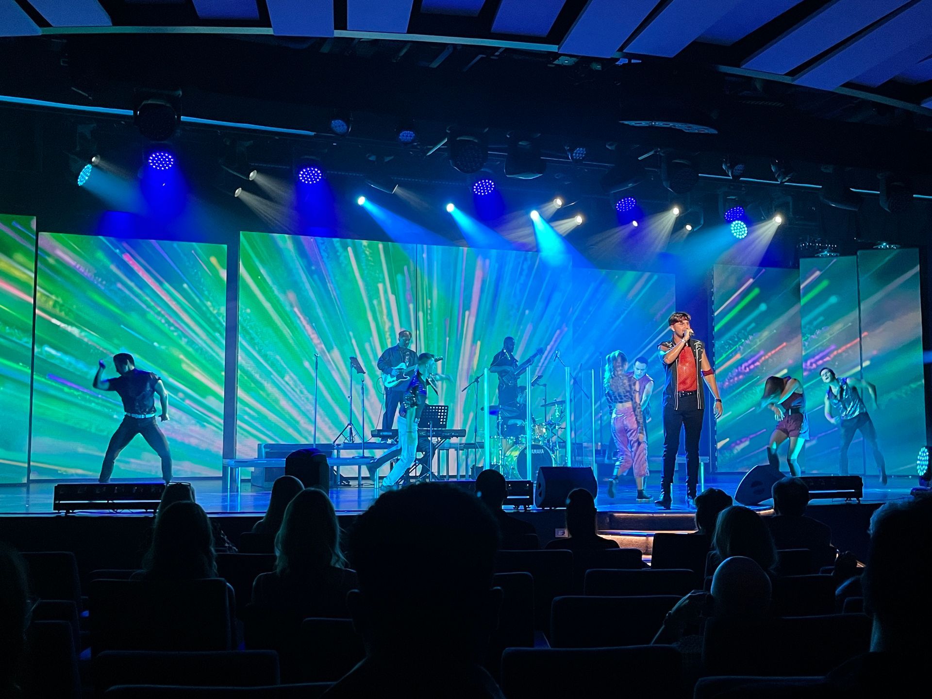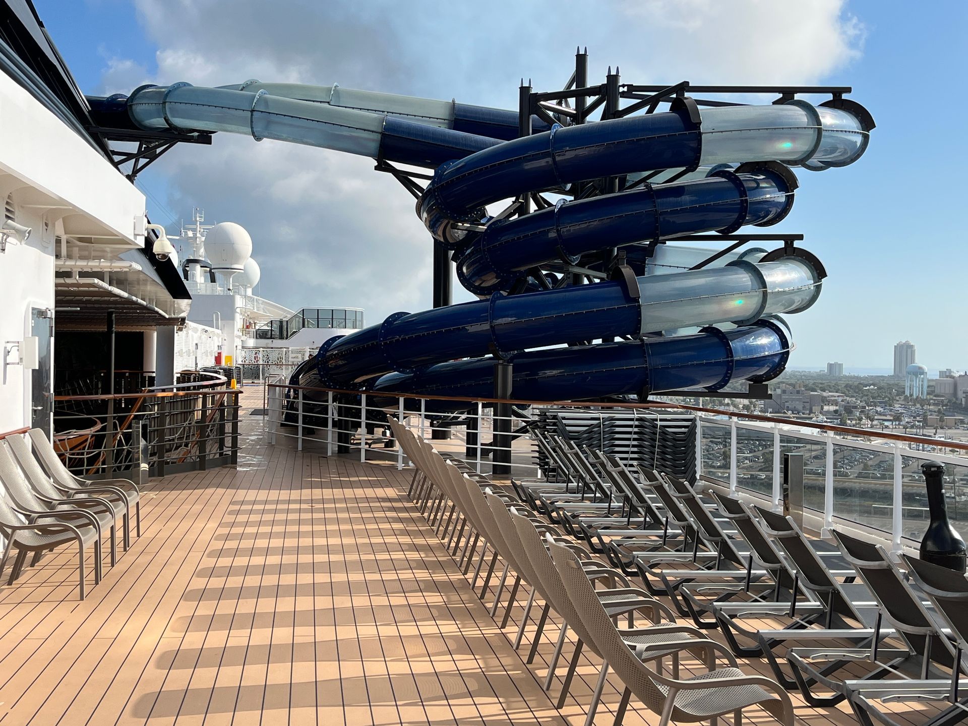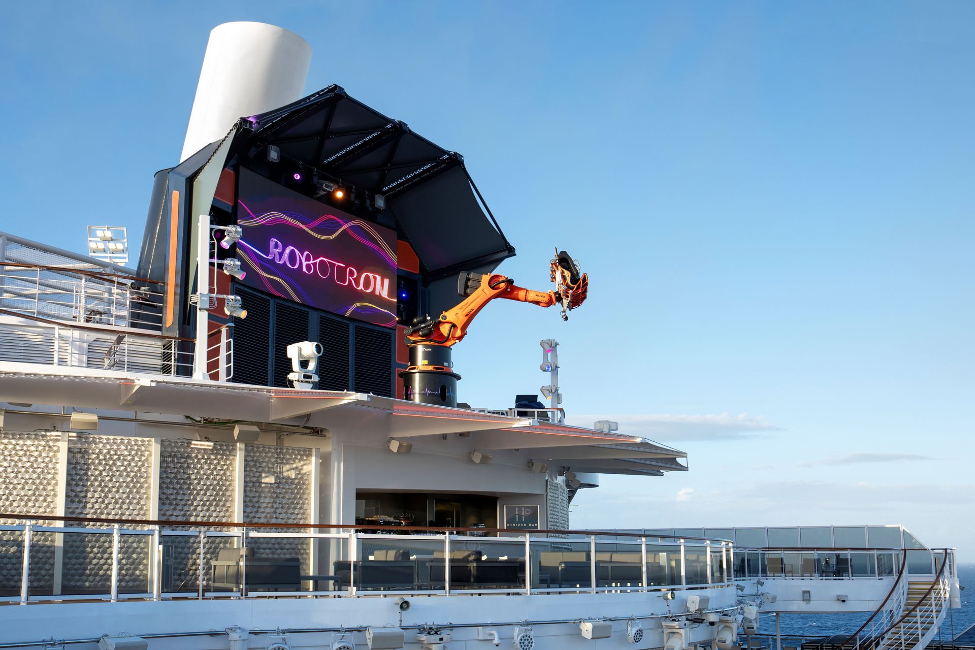 Explore, relax, or create memorable moments such as stopping in the Boulevard du Cabaret, a light-filled corridor that changes colors perfect for photos and balloon-effect simulations on the way to Le Cabaret Rouge. Guests can walk the Infinity Bridge on deck 8, an arched walkway over the water with stunning midship views, or the Bridge of Sighs higher on deck 16, a glass catwalk over the stern with dramatic views of the wake and decks below. The glass panoramic lifts at the stern provide ocean vistas while rising between decks. Creators can also record on the go in the Broadcasting Rooms, ensuring your content keeps up with your adventures.
