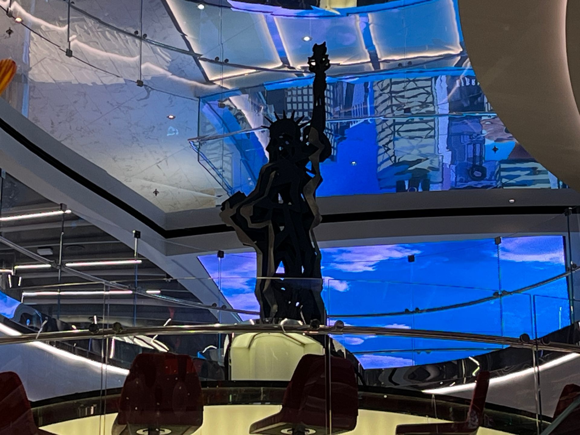 Entertainment is woven throughout the ship, with performances and live music available in multiple venues. The Chora Theatre serves as the main stage for featured shows, while Le Cabaret Rouge stages traditional variety shows with singing, dancing, and comedy. Guests can enjoy live music, pastries, and ice cream at Times Square, or relax in Liberty Plaza, a striking space highlighted by a stylized metal tribute to the Statue of Liberty. For those seeking gaming excitement, the MSC Signature Casino provides a lively environment for table games and slots, ensuring there’s something to entertain every guest throughout the day and evening (while at sea).