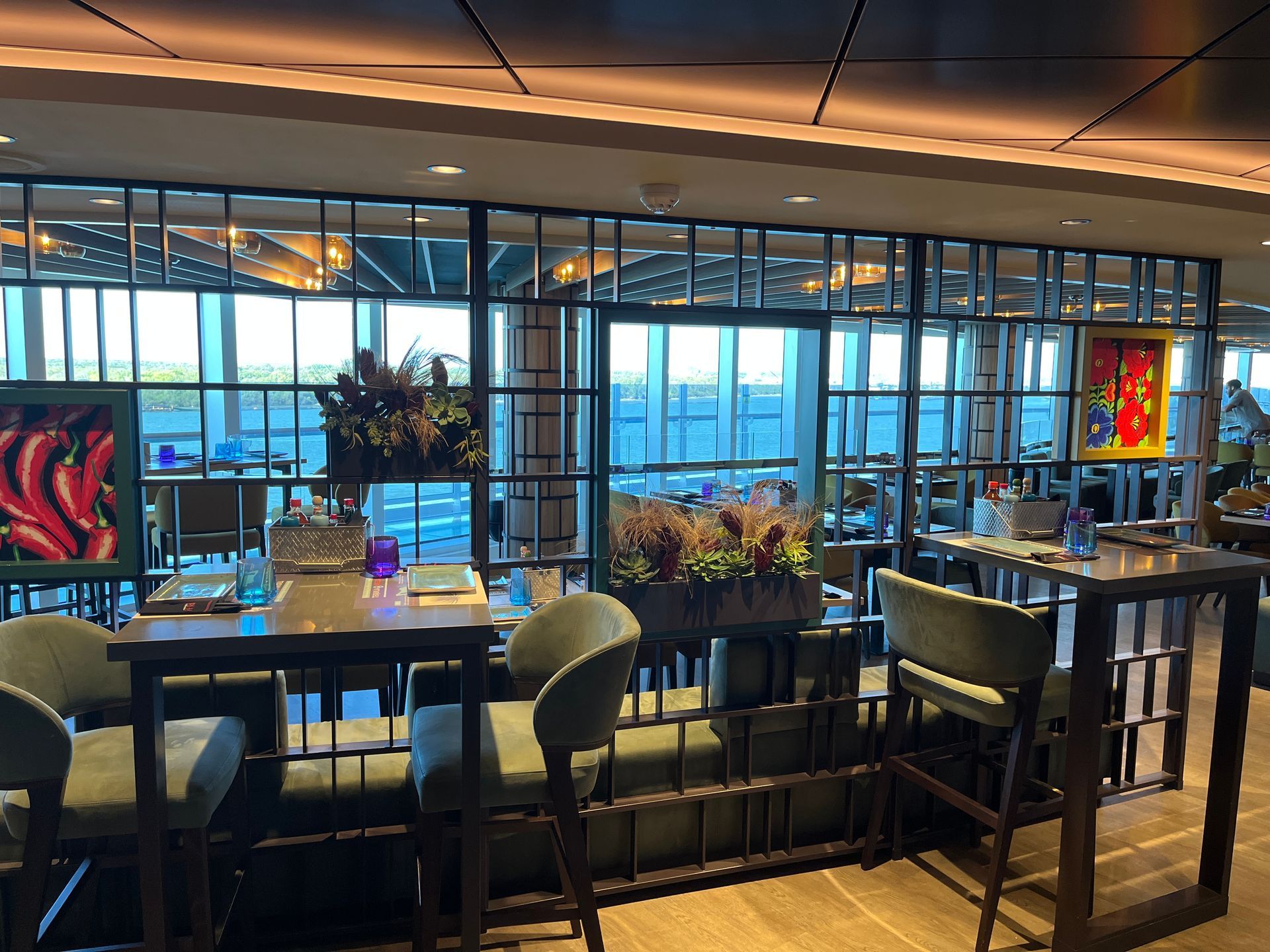 The Seascape has an exceptional range of dining experiences, designed to appeal to every taste while emphasizing comfort and connection. The ship’s restaurants feature subdued color palettes and rich textures, focusing attention on your dining companions and the cuisine rather than flashy decor. Buffet-style meals are served at the Marketplace Buffet and Restaurant, ideal for breakfast and lunch. For specialty dining, Butcher’s Cut and Chef’s Court within the restaurant showcase premium beef, while HOLA Tacos and Cantina brings casual Mexican flavors, and Ocean Cay Restaurant specializes in fresh seafood. Guests seeking Japanese cuisine can enjoy Kaito Teppanyaki or the Kaito Sushi Bar, the latter an open, circulating space with sushi selections.