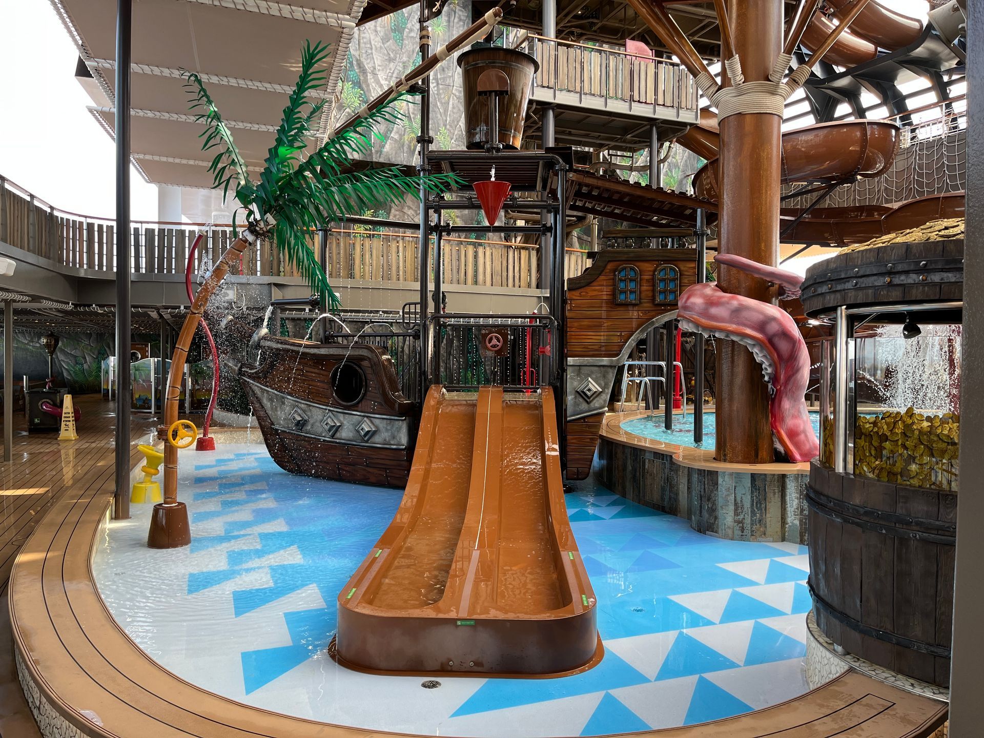 MSC Seascape offers a variety of age-specific spaces for children and teens to play, explore, and unwind. On Deck 18, the Kids Area provides a dedicated space for toddlers through teens to enjoy games and activities away from the crowds. Families can splash at Pirates Cove Water Park, a pirate ship-themed pool experience, or engage in light sports and fitness at the Hall of Games. These thoughtfully designed areas ensure fun, safe, and memorable experiences for young travelers.