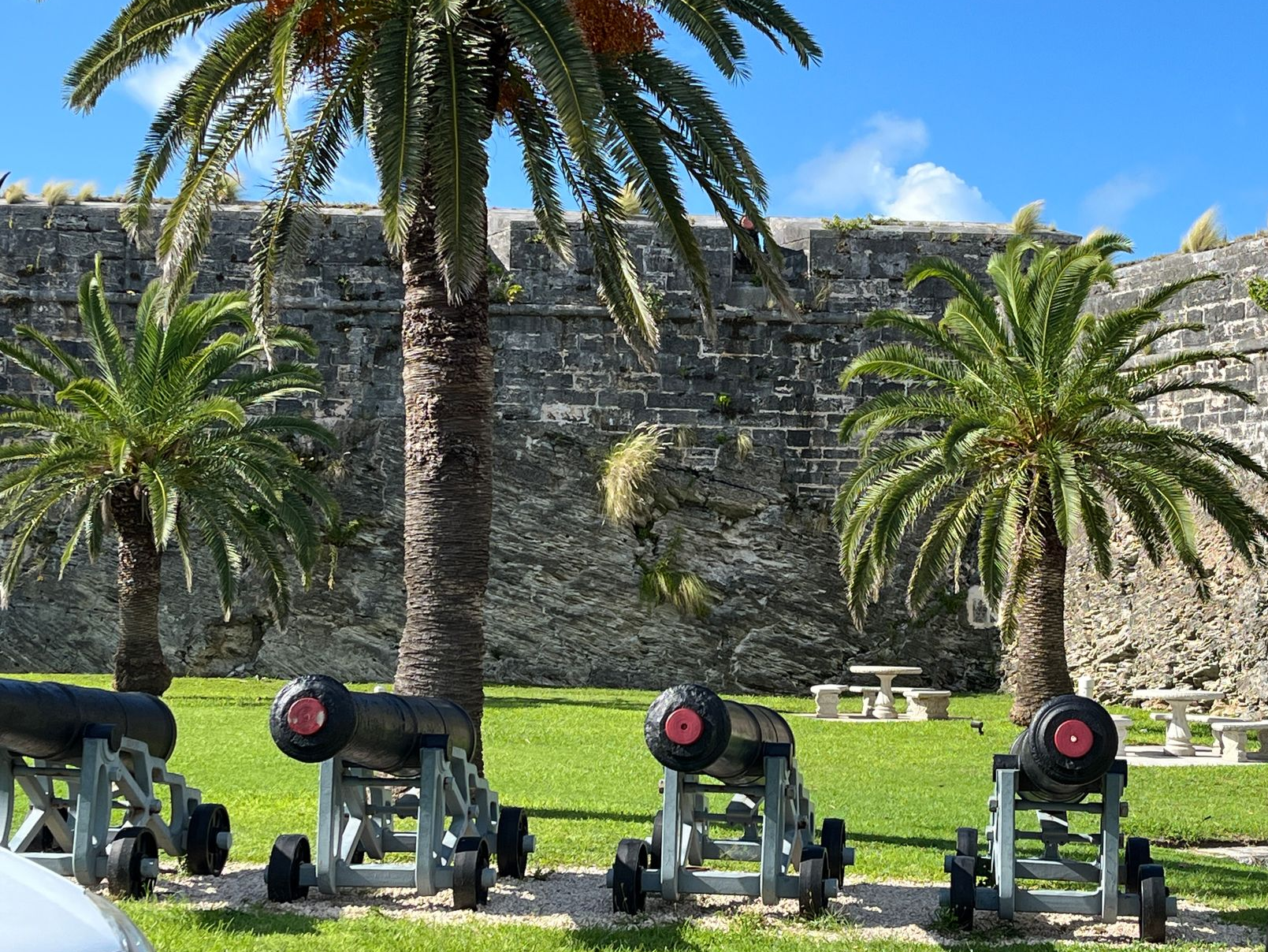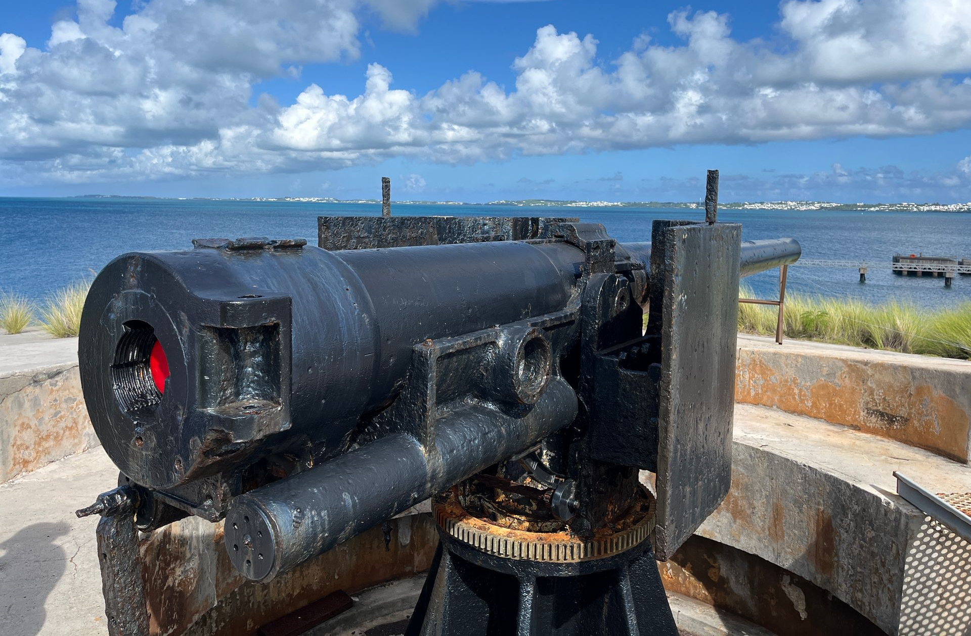 Apart from the defensive walls, barracks, storehouses and command headquarters, there are numerous examples of the cannons and artillery guarding the island from its founding. As noted elsewhere, Bermuda is an island of forts with overlapping defensive coverage from many positions. Combined with the reefs channeling anyone attempting to come ashore into very small approaches, no one has attempted to take Bermuda.