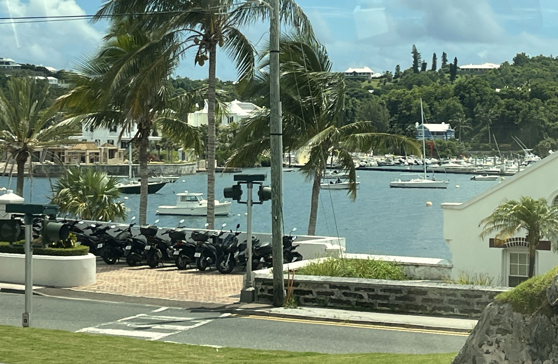View of the harbor in Hamilton. For a longer time to explore Hamilton, consider finding an alternative ride (bus or ferry from Hamilton to the Royal Navy Dockyard).