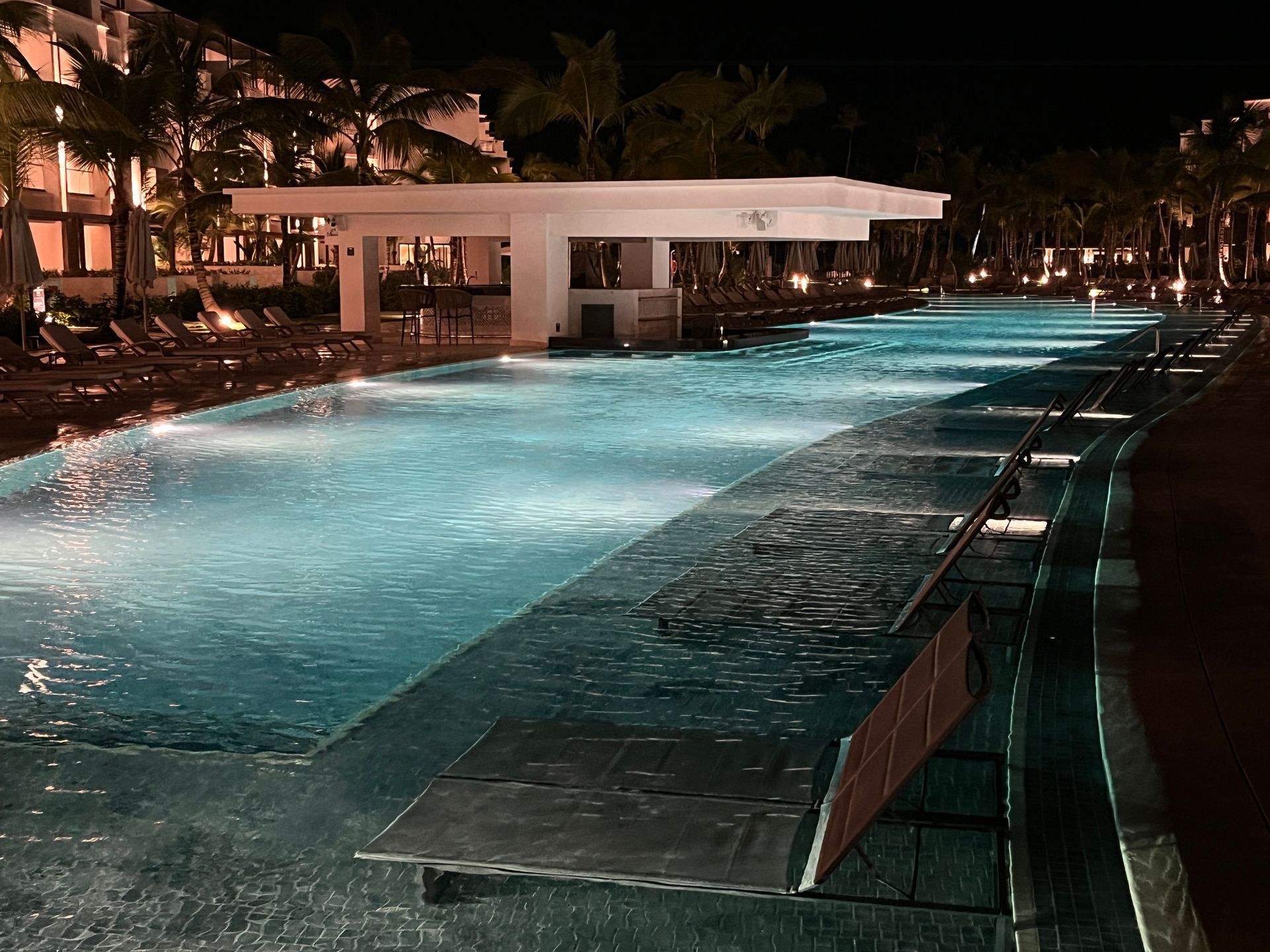 Our favorite spot was the infinity pool overlooking the beach near the Sugar Reef Swim-Up Bar, where we even practiced a little dancing in the water. During a short rain shower, we ducked under the bar’s roof, where we met a lively couple from New Mexico - proof that Secrets Tides is great for both quiet moments and meeting like-minded travelers.