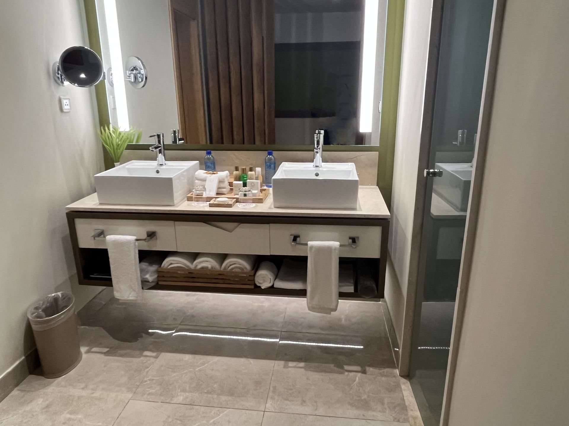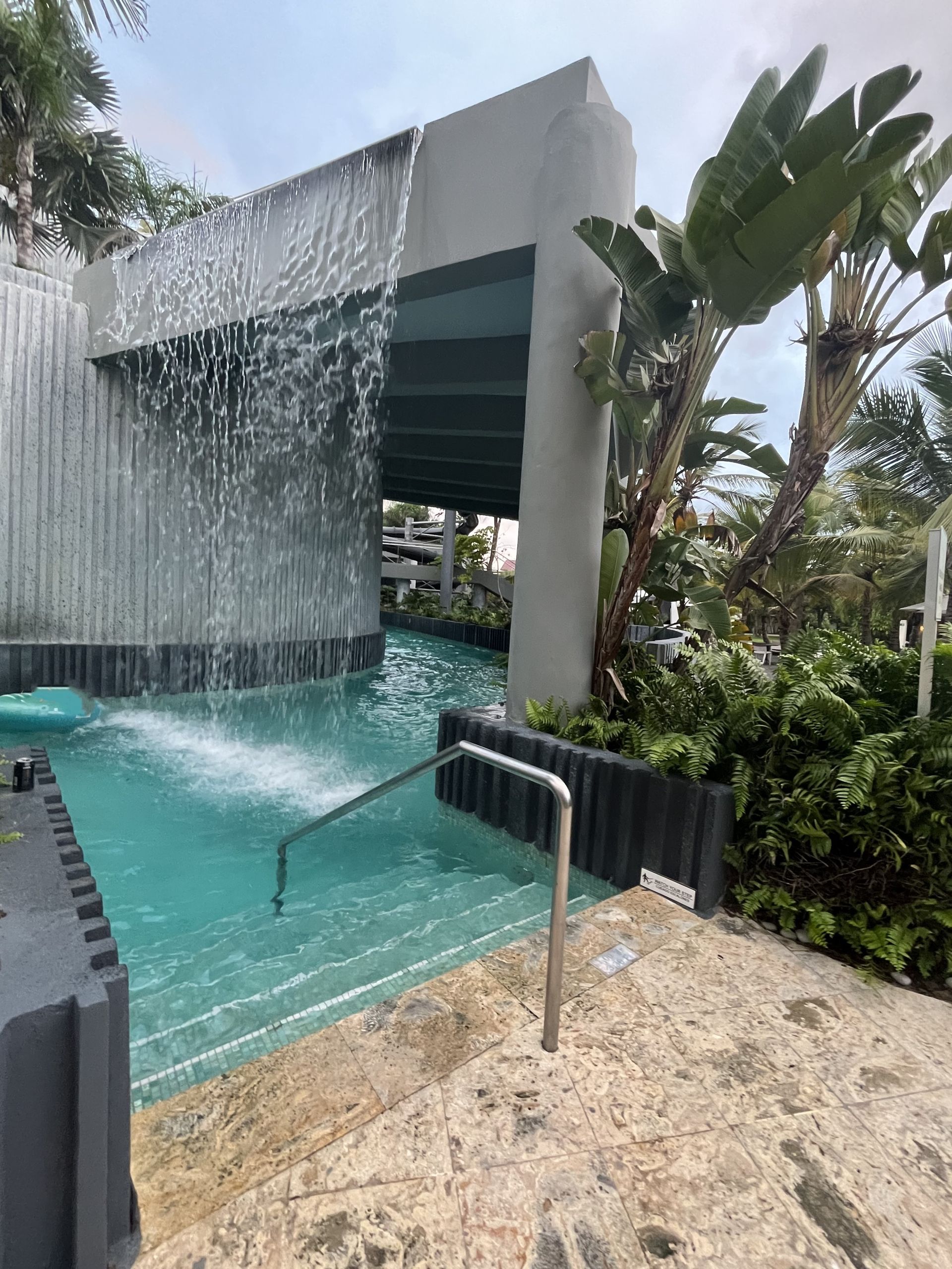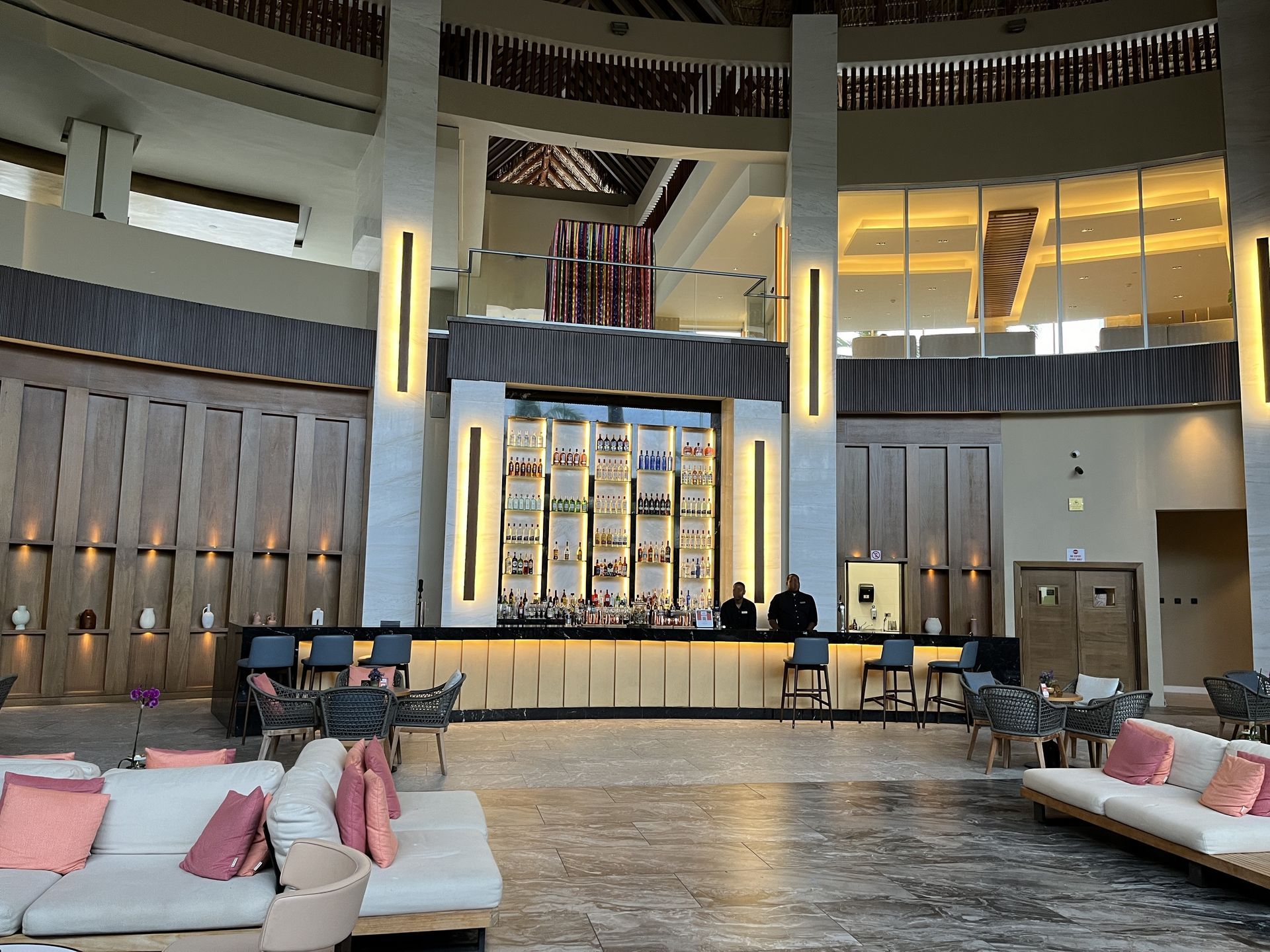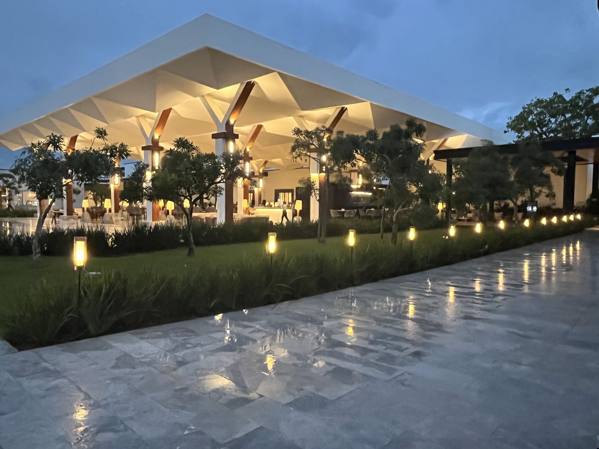 This brand-new resort centers around a series of beautifully designed pools that stretch from the entrance to the beachfront. Surrounding the pools are four-story guest buildings, with one building offering breathtaking oceanfront views. Despite the resort being fully booked, it never felt crowded. The layout is designed with plenty of private seating and cozy nooks from the lobby to the beach, making it perfect for couples and groups alike.