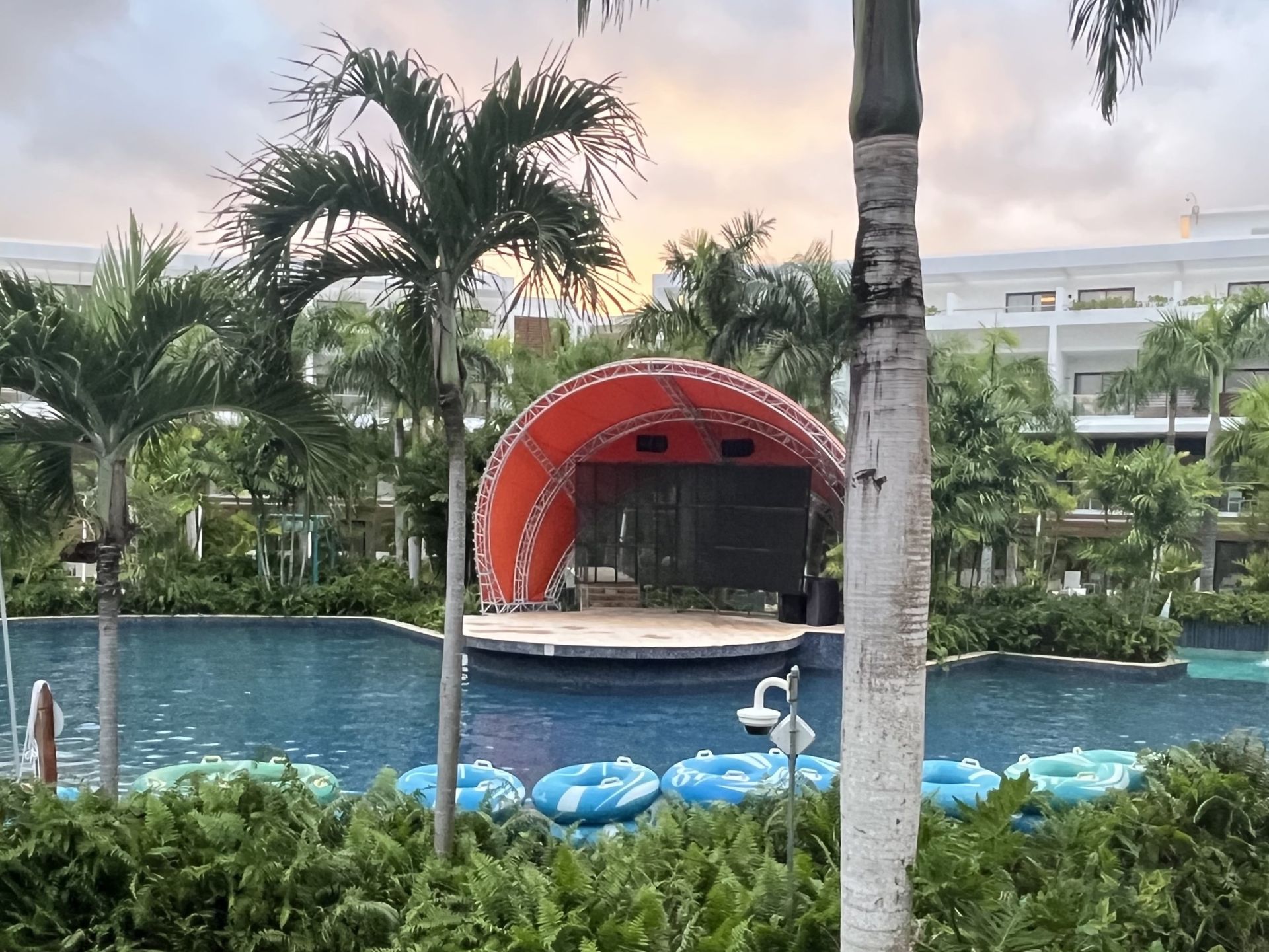 Secrets Tides’ beach is a sandy paradise along the Atlantic Ocean, with a nearby reef that keeps the waves manageable. The surf is active but relaxing, offering a serene backdrop for sunbathing or beach walks. We opted for a stroll and loved the abundance of thatched-roof umbrellas providing shade. Volleyball enthusiasts can enjoy the court, or you can simply unwind and soak in the tranquil vibes.